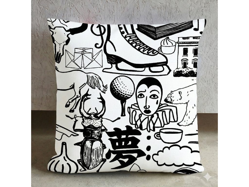 Doplněk potahu a ideální parťák do domácnosti. Rozměry: 50cm x 50cm. Jedná se pouze o potah. Neobsahuje výplň. Každý produkt je originál. Během výroby potahu může dojít k posunutí vzoru.