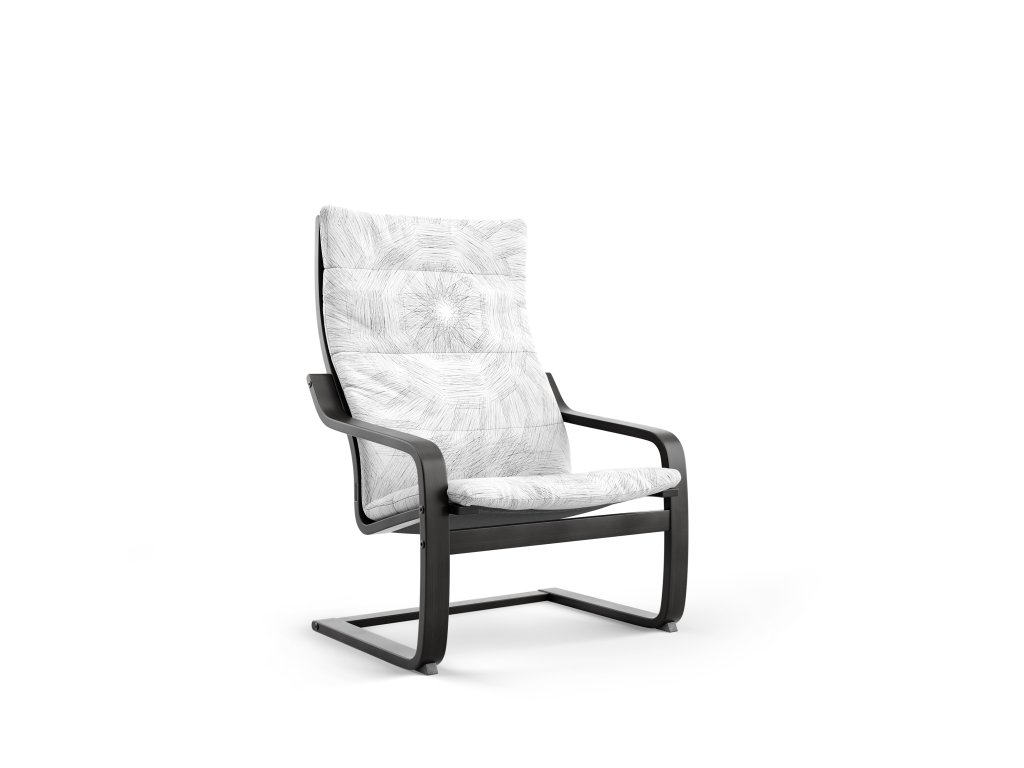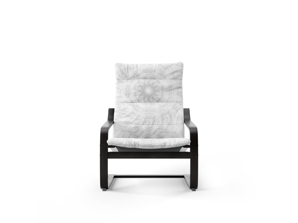 Malá jednoduchá ruční kresba následně sestavená do kruhového motivu. Dalším opakováním, zrcadlením a nabýváním vzniká abstraktní vzor. Můžeme v něm vidět rotující pohyb, ufo, slunce nebo hvězdy. Minimalistická černobílá barevnost.